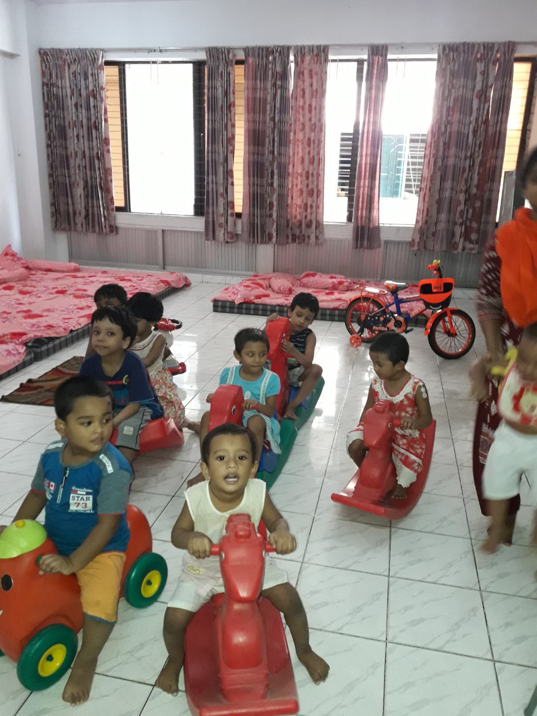 কর্মজীবি মায়েদের ছোট শিশু সন্তানদের দিবাকালীন দেখাশোনার পাশাপাশি খেলাধুলা, ছবি আকাঁ, অক্ষর পরিচিতি, ছড়া শেখা ও চিত্তবিনোদনের ব্যবস্থা রয়েছে। এই সেন্টারে এক থেকে ছয় বছরের শিশুদেরকে রাখা হয়। সার্বক্ষনিক একজন ইনচার্জের অধীনে একজন শিক্ষিকা কাম স্বাস্থ্য সহকারী ও দুইজন আয়া কর্মরত রয়েছে। শিশু ভর্তি ফি ১৫০০/- টাকা এবং মাসিক বেতন ৮০০/-টাকা। শিশুরা বাড়ি থেকে যার যার খাবার নিয়ে আসে এবং সেন্টারটিতে গোসলের কোন ব্যবস্থা নেই। সরকারী ছুটির দিন ব্যতীত প্রতি কর্মদিবসের সকাল ৮.৩০ মিঃ হতে বিকাল ৬.০০ মিঃ পর্যন্ত ডে-কেয়ার সেন্টারটির কাযক্রম পরিচালিত হয়। কেন্দ্রে একজন অভিভাবকের দুইটির বেশি শিশু ভর্তি করা যাবে না। কেন্দ্রে ভর্তির জন্য নির্ধারিত ভর্তি ফরমে আবেদন করতে হবে। শিশুর সঙ্গে কোন মা/অভিভাবক/গৃহকর্মী কেন্দ্রে অবস্থান করতে পারবে না। সাময়িক অসুস্থ ও ছোয়াঁচে রোগে আক্রান্ত শিশুকে নিরাময় না হওয়া পযন্ত ডে-কেয়ার সেন্টারে আনা যাবে না। শিশুদের জন্য দিবাকালীন বিশ্রামের ব্যবস্থাও রয়েছে।